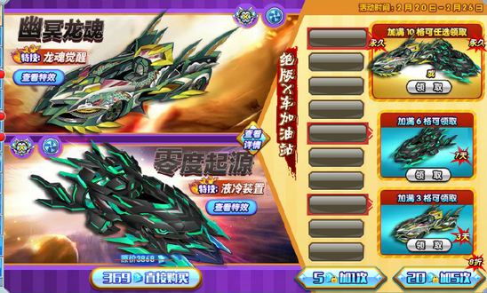 加油满3格可领取上幽冥龙魂3天,满6格可得零度起源7天,